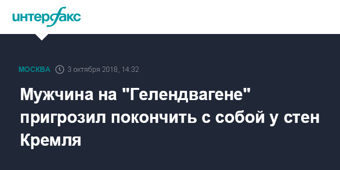 "Мужчина на автомобиле "Мерседес-Гелендваген" пытался проехать под "кирпич" на Красную площадь, требует встречи с руководством страны и угрожает покончить с собой",- сказал собеседник агентства.