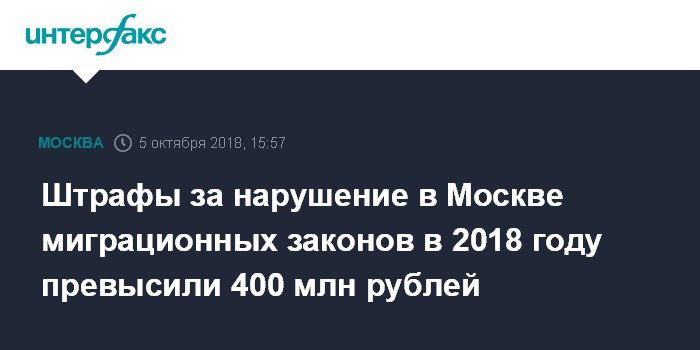 Штрафы за нарушение в Москве миграционных законов в 2018 году превысили 400 млн рублей