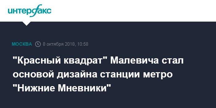 "Красный квадрат" Малевича стал основой дизайна станции метро "Нижние Мневники"