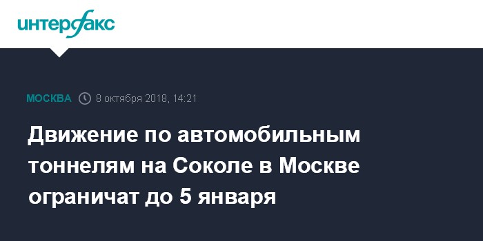 Движение по автомобильным тоннелям на Соколе в Москве ограничат до 5 января