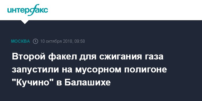Второй факел для сжигания газа запустили на мусорном полигоне "Кучино" в Балашихе