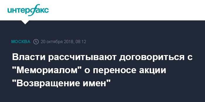 Власти рассчитывают договориться с "Мемориалом" о переносе акции "Возвращение имен"