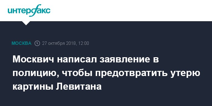 Москвич написал заявление в полицию, чтобы предотвратить утерю картины Левитана