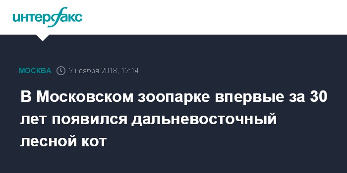 Москва. 2 ноября. INTERFAX.RU - Самка краснокнижного дальневосточного лесного кота появилась в Московском зоопарке впервые за 30 лет, ее привезли из Новосибирска.