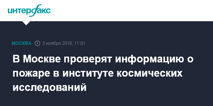 Москва. 3 ноября. INTERFAX.RU - Экстренные службы проверяют информацию о возгорании в здании института космических исследований РАН в Москве, сообщил "Интерфаксу" осведомленный источник.