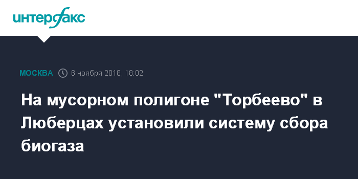 Москва. 6 ноября. INTERFAX.RU - Установка системы сбора биогаза на мусорном полигоне "Торбеево" в Люберцах завершена, до конца года будет поставлено основное оборудование по обработке газа, сообщили "Интерфаксу" в пресс-службе администрации городского округа.