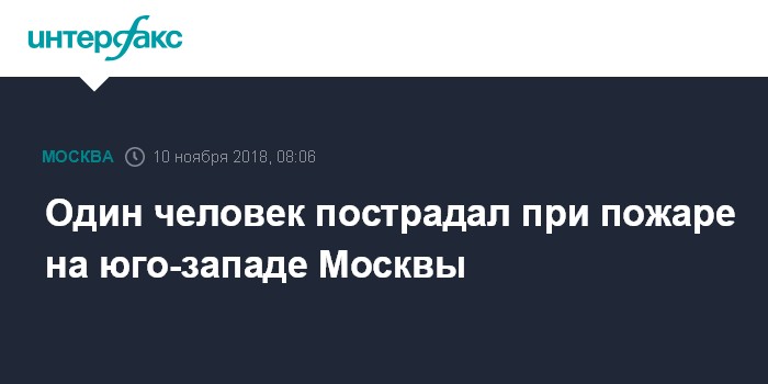 Москва. 10 ноября. INTERFAX.RU - Один человек пострадал в результате пожара в жилом доме на юго-западе Москвы, сообщили "Интерфаксу" в пресс-службе столичного главка МЧС.