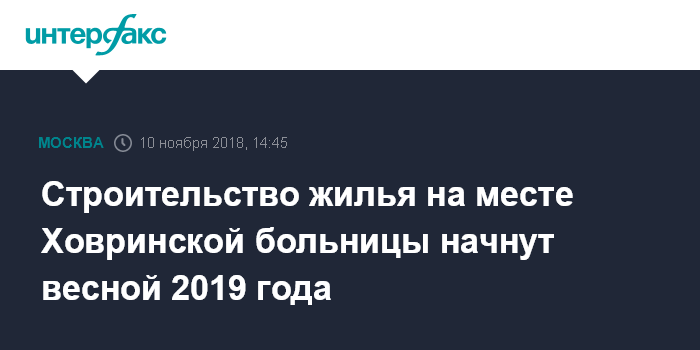 Москва. 10 ноября. INTERFAX.RU - Строительство жилья на площадке сносимого московского долгостроя - здания Ховринской больницы - планируется начать в апреле следующего года, заявил журналистам в субботу заместитель мэра столицы по вопросам градостроительной политики и строительства Марат Хуснуллин.