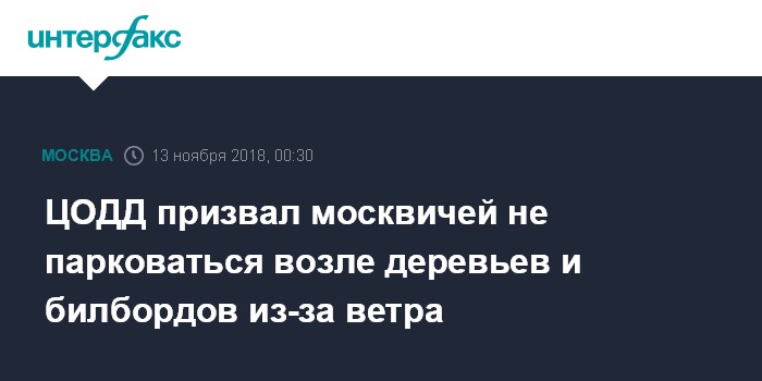 Москва. 13 ноября. INTERFAX.RU - Центр организации дорожного движения призвал водителей не парковать автомобили у деревьев и возле шатких конструкций из-за порывов ветра до 15 м/с.
