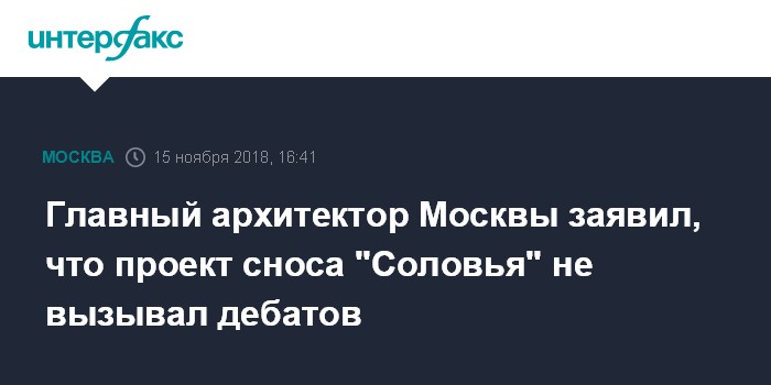 Главный архитектор Москвы заявил, что проект сноса "Соловья" не вызывал дебатов