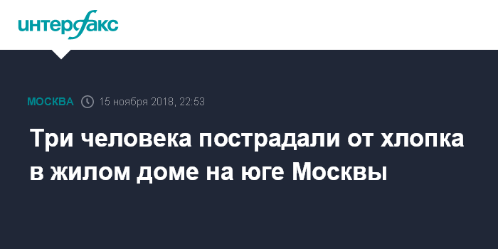 Три человека пострадали от хлопка в жилом доме на юге Москвы