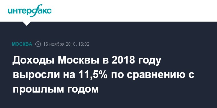 Доходы Москвы в 2018 году выросли на 11,5% по сравнению с прошлым годом
