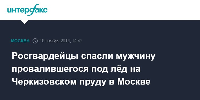 "Инцидент произошел в субботу вечером на набережной Шитова. На Черкизовском пруду под лед провалился мужчина. Свидетели происшествия обратились к находившимся на маршруте патрулирования сотрудникам вневедомственной охраны Главного управления Росгвардии по г. Москве. Росгвардейцы поспешили на помощь утопавшему",- рассказали "Интерфаксу" в пресс-службе Центрального округа Росгвардии.