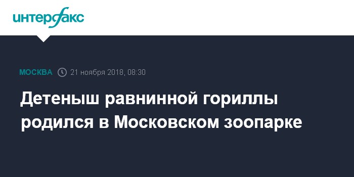 Москва. 21 ноября. INTERFAX.RU - В семье равнинных горилл Московского зоопарка пополнение: на свет появилась самка ростом 40 см и весом 1,5 кг, сообщила гендиректор учреждения Светлана Акулова.