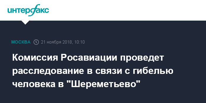 Комиссия Росавиации проведет расследование в связи с гибелью человека в "Шереметьево"