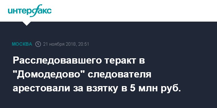 Расследовавшего теракт в "Домодедово" следователя арестовали за взятку в 5 млн руб.