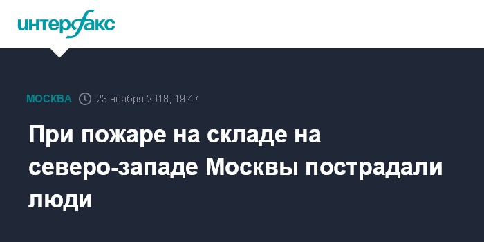Москва. 23 ноября. INTERFAX.RU - В результате пожара на складе на северо-западе Москвы пострадали люди, сообщили "Интерфаксу" в пресс-службе столичного главка МЧС.