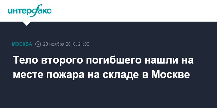 Москва. 23 ноября. INTERFAX.RU - Число погибших на пожаре на складе на северо-западе Москвы возросло до двух, сообщил "Интерфаксу" осведомленный источник.