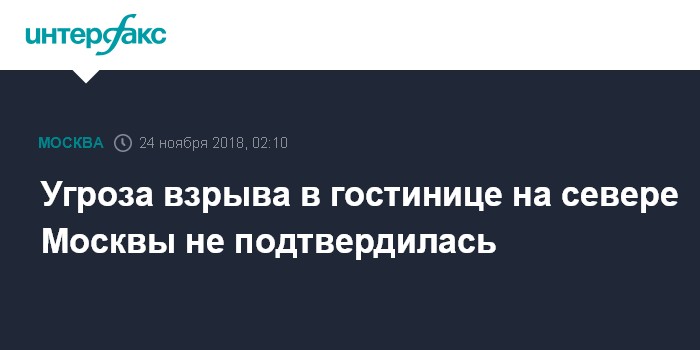 Москва. 24 ноября. INTERFAX.RU - Информация об угрозе взрыва в гостинице на севере Москвы не подтвердилась, сообщил "Интерфаксу" осведомлённый источник.