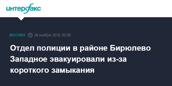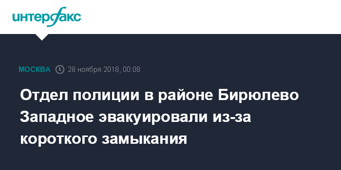 Москва. 27 ноября. INTERFAX.RU - Отдел полиции по району Бирюлево Западное эвакуировали из-за короткого замыкания, сообщил "Интерфаксу" осведомлённый источник.