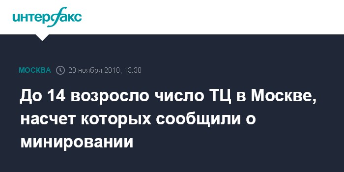 Ранее "Интерфакс" сообщал о угрозе минирования десяти ТЦ, в том числе "Капитолия", "Европейского", "Города", "Мегаполиса", "Цветного", "Горбушкина двора", "Звездочки", "Атриума".