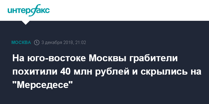 На юго-востоке Москвы грабители похитили 40 млн рублей и скрылись на "Мерседесе"