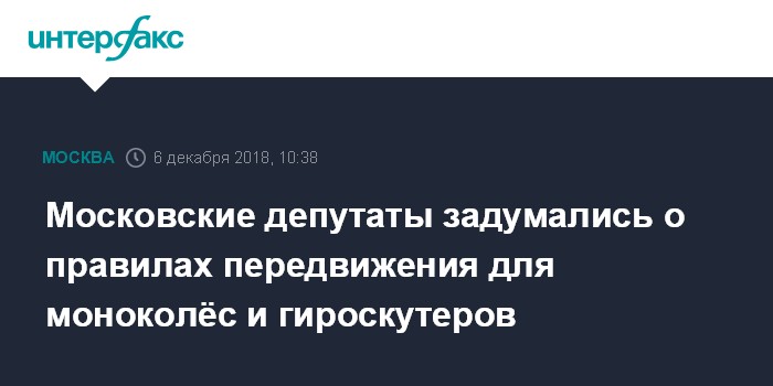 Москва. 6 декабря. INTERFAX.RU - Использование гироскутеров, сигвеев и моноколес должно быть отрегулировано Правилами дорожного движения, но порядок их использования на отдельных территориях Москвы может быть определен на региональном уровне. Об этом сообщил председатель Мосгордумы Алексей Шапошников.