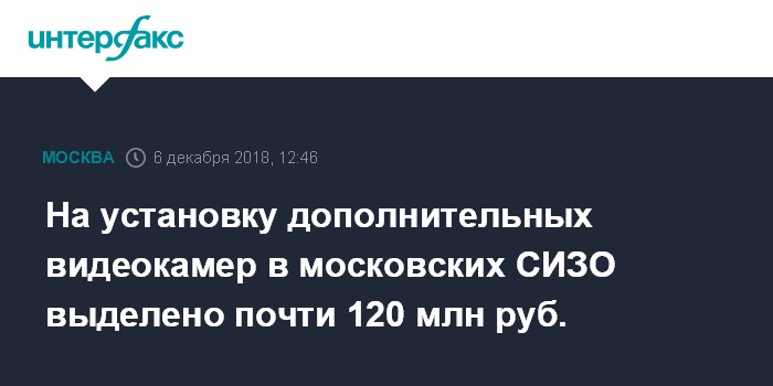 На установку дополнительных видеокамер в московских СИЗО выделено почти 120 млн руб.