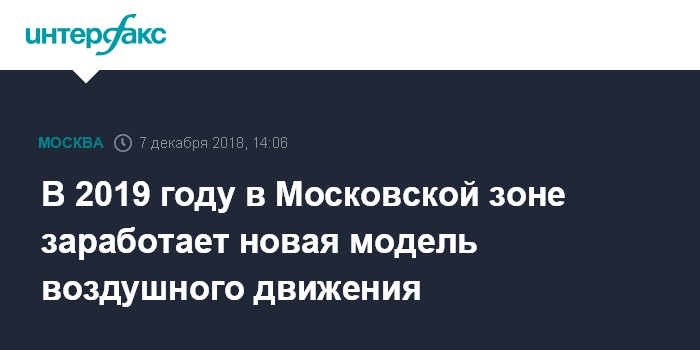 Москва. 7 декабря. INTERFAX.RU - Новая модель воздушного движения в Московской зоне заработает в 2019 году, заявил замглавы Минтранса РФ Александр Юрчик журналистам в пятницу.