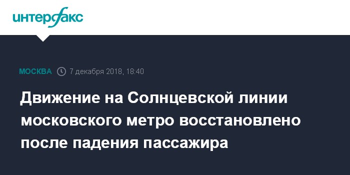 Движение на Солнцевской линии московского метро восстановлено после падения пассажира