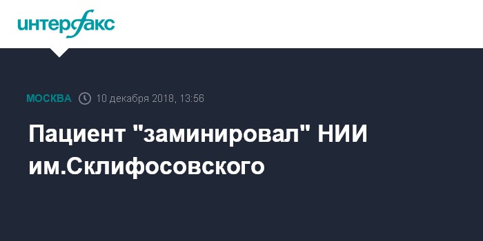 Москва. 10 декабря. INTERFAX.RU - Пациент НИИ имени Склифосовского подозревается в ложном сообщении о минировании больницы, сообщил "Интерфаксу" в понедельник информированный источник.