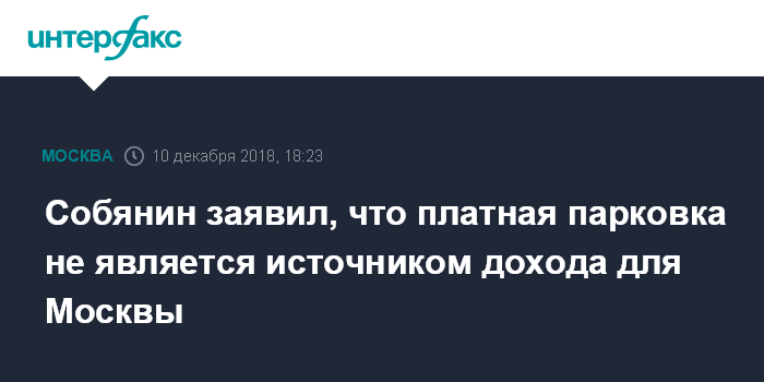 Москва. 10 декабря. INTERFAX.RU - Платная парковка в Москве - не источник дохода бюджета города, а мера регулирования транспортных потоков, заявил мэр Москвы Сергей Собянин.