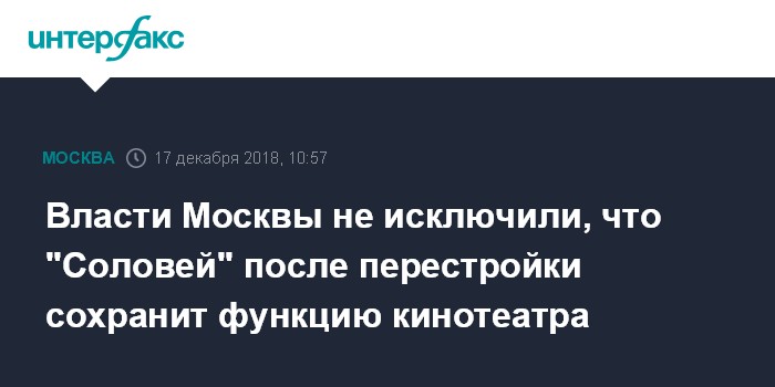 Власти Москвы не исключили, что "Соловей" после перестройки сохранит функцию кинотеатра