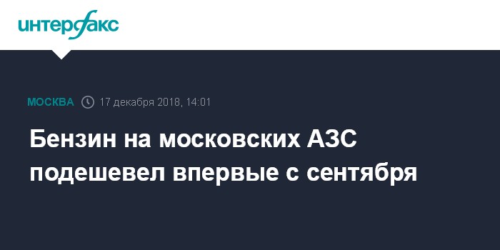 Москва. 17 декабря. INTERFAX.RU - Цены на бензин в столичном регионе на минувшей неделе снизились на 2 копейки, свидетельствуют данные Московской топливной ассоциации (МТА).