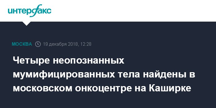 Четыре неопознанных мумифицированных тела найдены в московском онкоцентре на Каширке