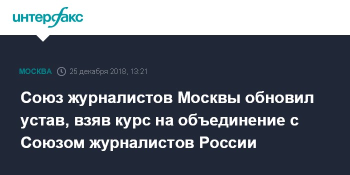 Москва. 25 декабря. INTERFAX.RU - Союз журналистов Москвы обновил устав организации, что позволит СЖМ в качестве отдельного юрлица становиться частью других общественных организаций, в том числе Союза журналистов России, передает корреспондент "Интерфакса".