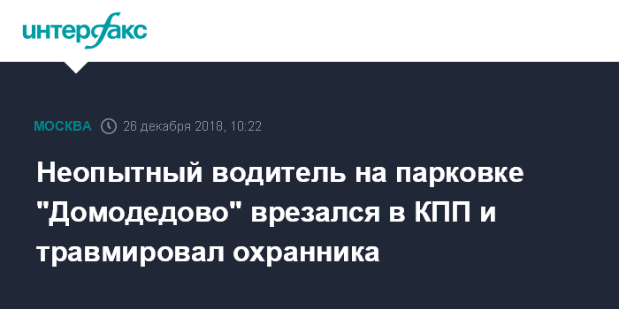 Москва. 26 декабря. INTERFAX.RU - Неопытный водитель, взяв автомобиль в каршеринге на парковке аэропорта "Домодедово", не справился с управлением и наехал на КПП одного из предприятий комплекса, сообщил "Интерфаксу" источник в экстренных службах в среду.