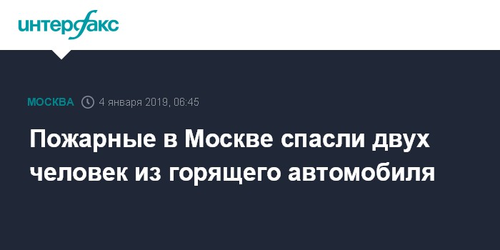 Москва. 4 января. INTERFAX.RU - Пожарные потушили горящий автомобиль на северо-западе Москвы, спасены два человека, сообщает столичное ГУ МЧС.