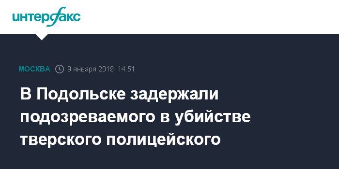 "В результате оперативно-розыскных мероприятий сотрудниками уголовного розыска УМВД России по городскому округу Подольск Московской области задержан житель Республики Чувашия, 1978 г.р., подозреваемый в убийстве полицейского из Тверской области в ночь на 9 января. В ближайшее время он будет доставлен в следственные органы", - сказала Петрова.