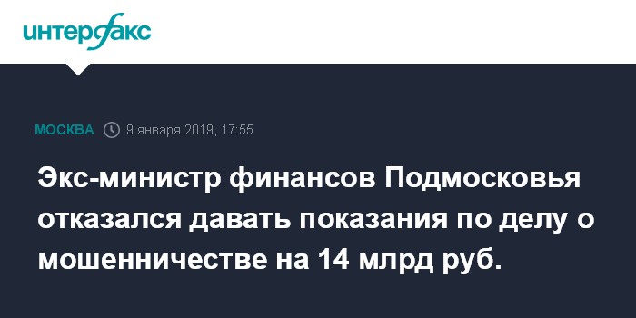Экс-министр финансов Подмосковья отказался давать показания по делу о мошенничестве на 14 млрд руб.