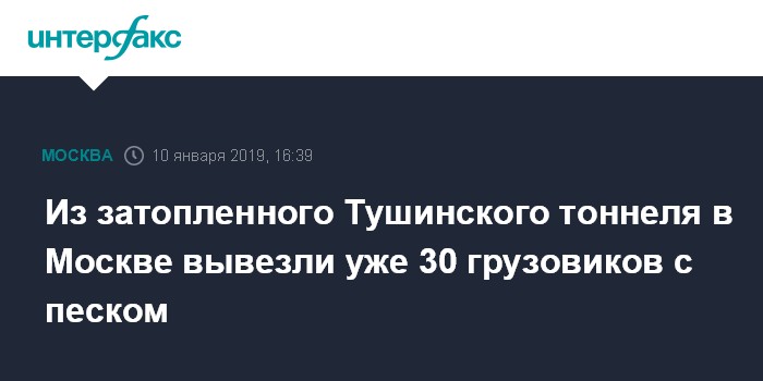 Москва. 10 января. INTERFAX.RU - Более 150 КамАЗов потребуется для вывоза песка из подтопленного Тушинского тоннеля, считает заммэра Москвы по вопросам транспорта Максим Ликсутов.