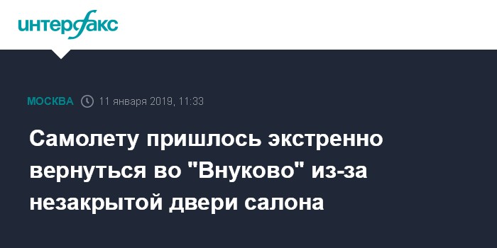 Самолету пришлось экстренно вернуться во "Внуково" из-за незакрытой двери салона