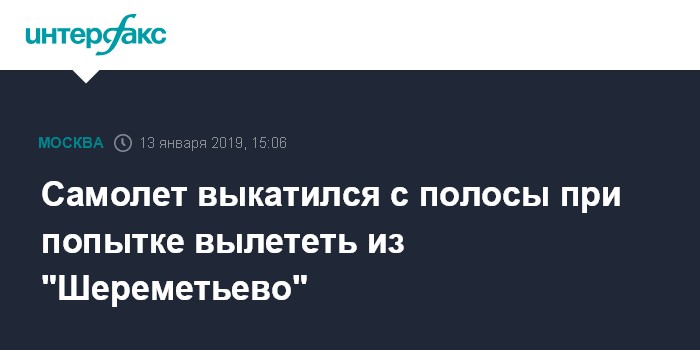 Москва. 13 января. INTERFAX.RU - Пассажирский самолет сошел со взлетной полосы во время вылета из "Шереметьево" в Прагу, сообщил "Интерфаксу" в воскресенье источник в авиадиспетчерских службах.