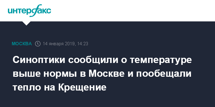 Синоптики сообщили о температуре выше нормы в Москве и пообещали тепло на Крещение