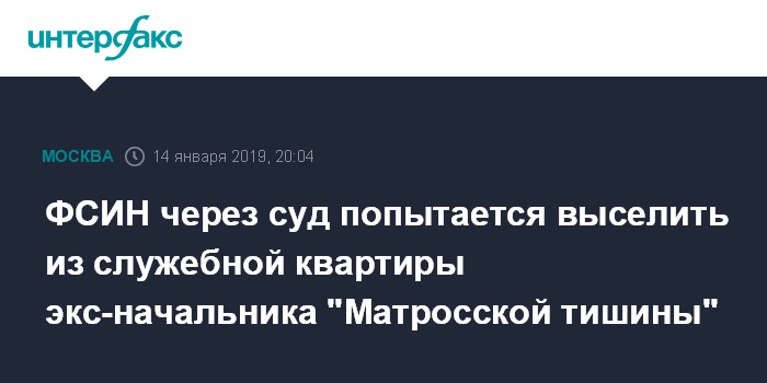 Замначальника "Матросской тишины" уволен после скандала со спецкамерами для вип-арестантовЧитать подробнееВ УФСИН напомнили, что, в соответствии с пунктом 1 ст. 103 Жилищного кодекса РФ, в случаях прекращения договоров найма специализированных жилых помещений граждане должны их освободить. В случае отказа освободить помещения граждане подлежат выселению в судебном порядке без предоставления других жилых помещений.