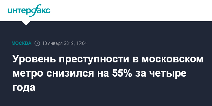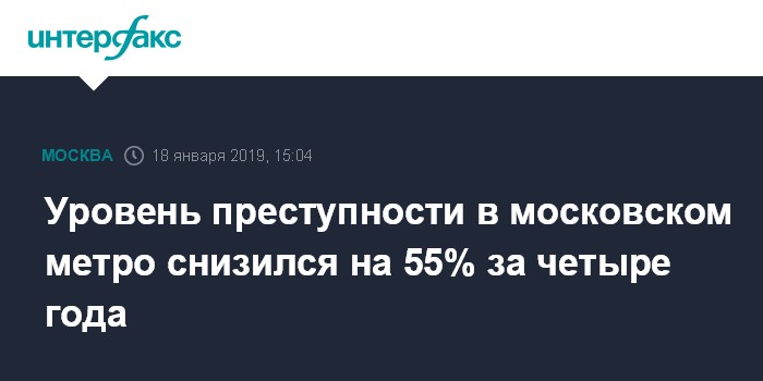 Москва. 18 января. INTERFAX.RU - Количество преступлений, совершённых на территории столичного метрополитена с 2014 по 2018 годы, сократилось на 55,4%, говорится в сообщении пресс-службы ГУ МВД РФ по Москве.