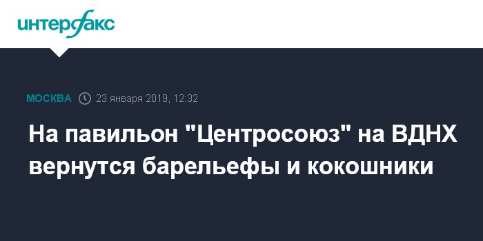 На павильон "Центросоюз" на ВДНХ вернутся барельефы и кокошники