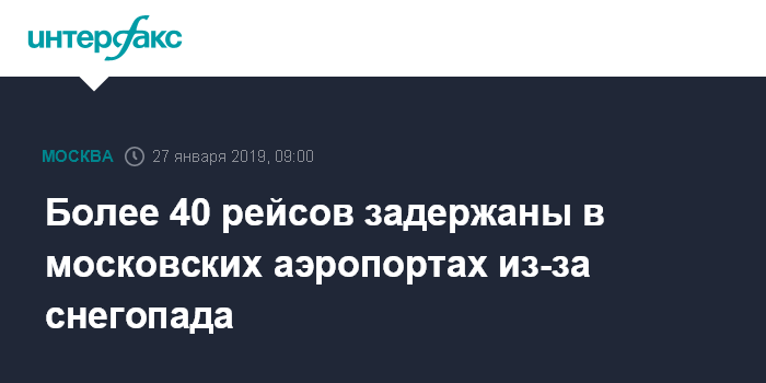 Москва. 27 января. INTERFAX.RU - Снегопад в Москве продолжается, в аэропортах задержаны более 40 рейсов, 11 рейсов отменены, следует из данных сервиса "Яндекс.Расписание".