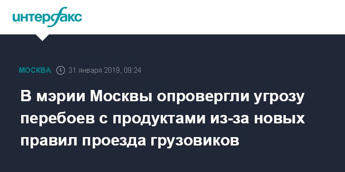 В мэрии Москвы опровергли угрозу перебоев с продуктами из-за новых правил проезда грузовиков