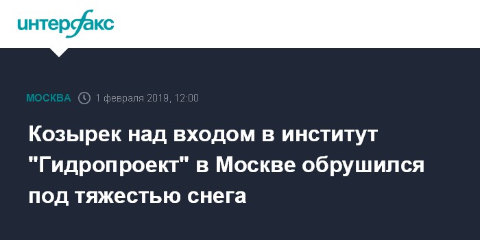 Москва. 1 февраля. INTERFAX.RU - Козырек здания московского бизнес-центра "Гидропроект" на Волоколамском шоссе проломился под тяжестью снега, сообщается в пятницу на сайте собственника здания НИЦ ЕЭС.